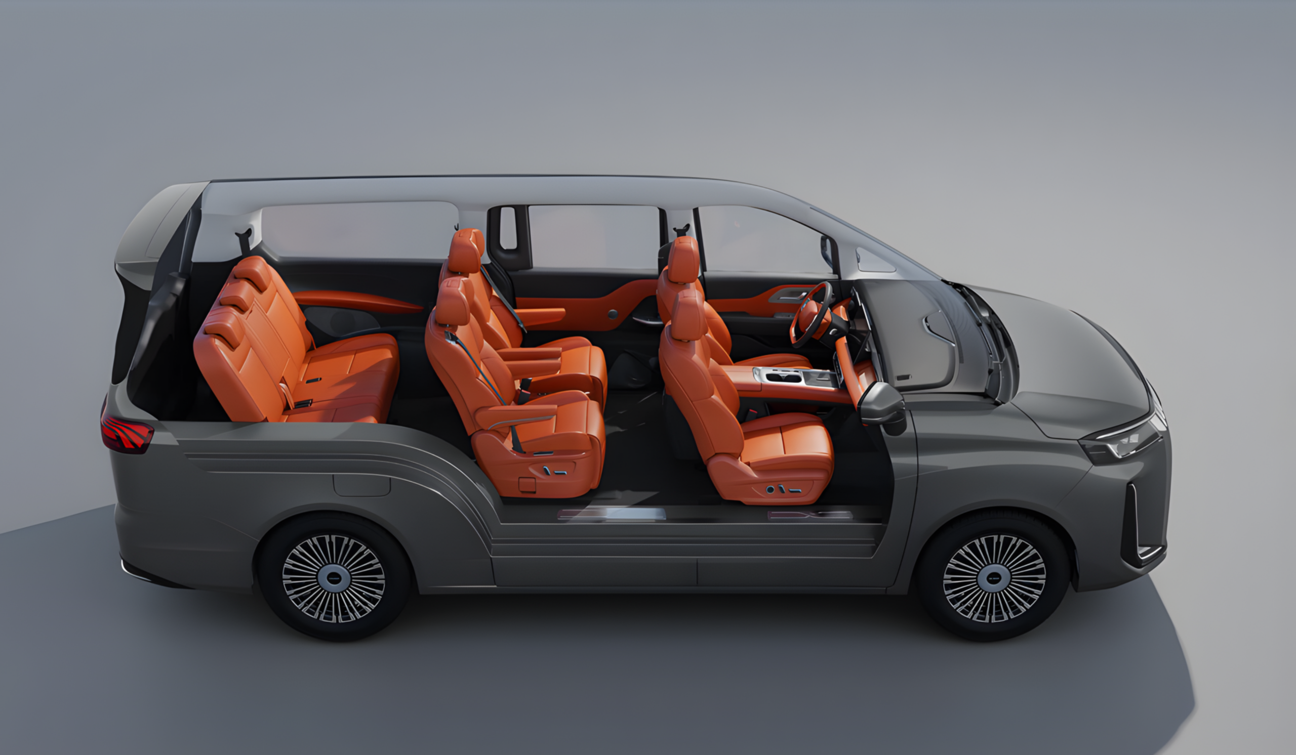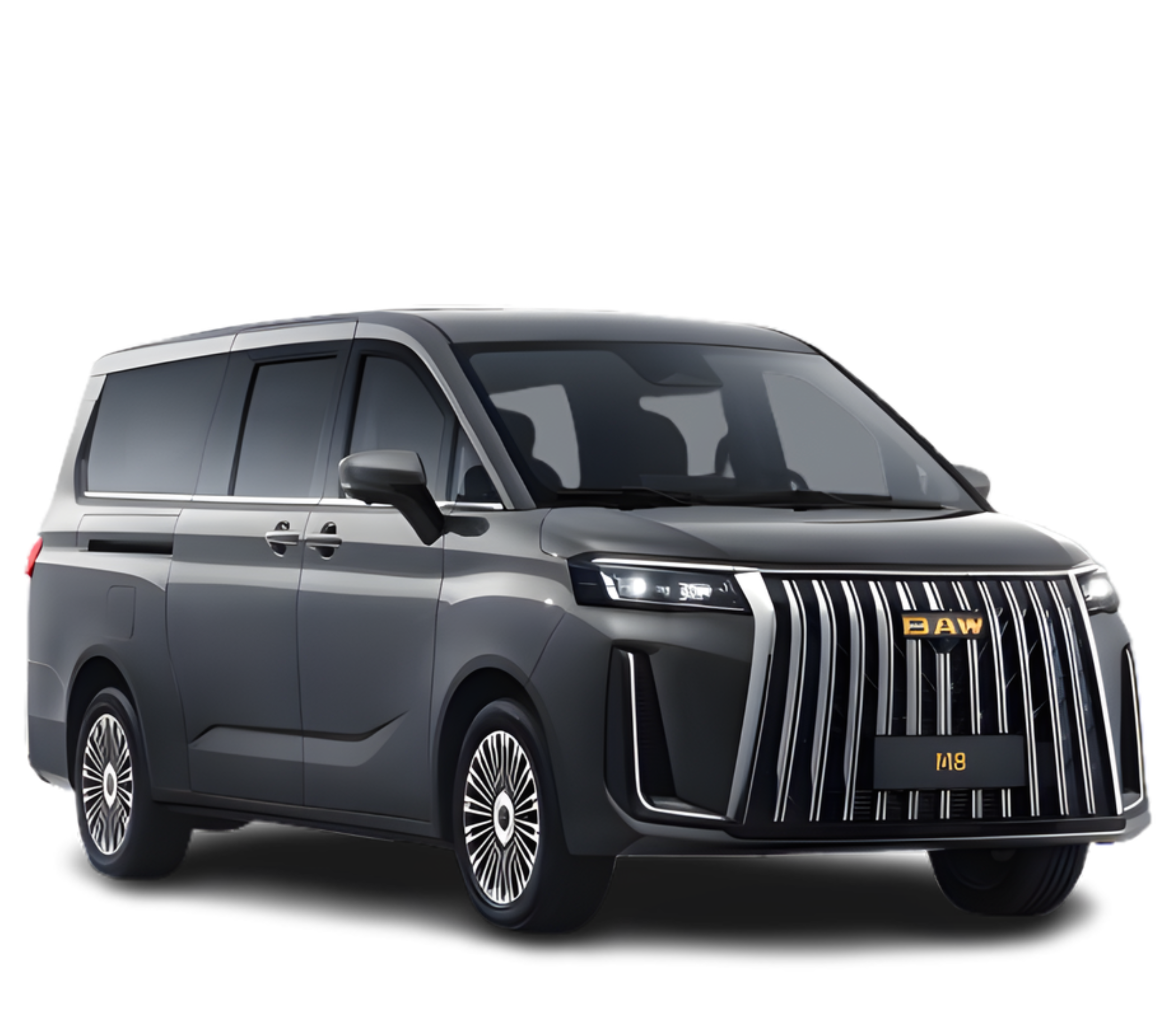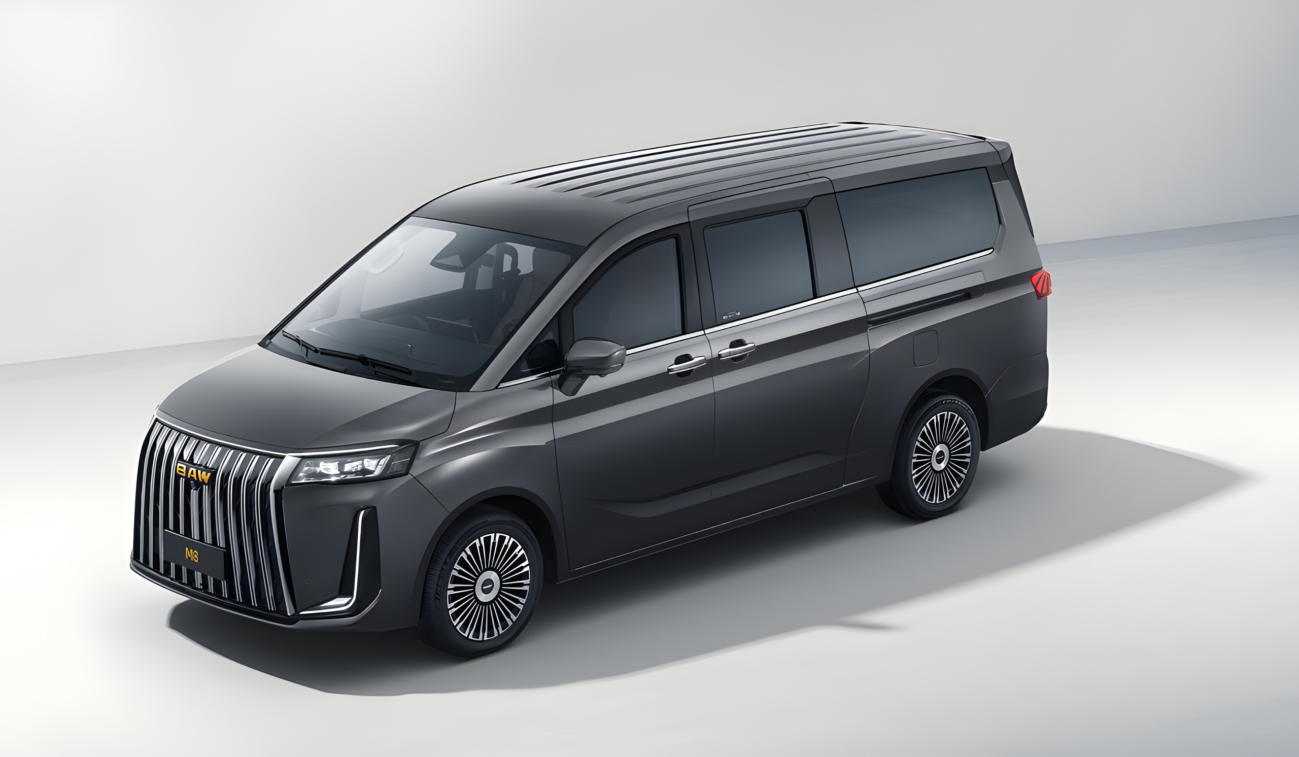 Le BAW M8 BEV est un monospace électrique neuf places de grande taille, conçu pour allier une esthétique moderne et professionnelle à une grande polyvalence. Son extérieur distinctif se caractérise par une calandre avant imposante en forme de cascade, des phares LED sculptés en L et des doubles portes coulissantes électriques, le tout reposant sur un empattement généreux de 3 200 mm. La configuration à neuf places propose généralement une disposition des sièges 2-2-2-3 dans son habitacle de 5 317 mm de long, offrant un confort spacieux digne d'un salon roulant, avec des sièges réglables indépendamment et des solutions de rangement astucieuses. Ses performances sont assurées par un moteur synchrone à aimant permanent de 170 kW (228 ch), qui délivre un couple maximal de 310 Nm et est associé à une batterie lithium-fer-phosphate de 81 kWh ou 92 kWh, offrant une autonomie en cycle mixte (CLTC) jusqu'à 560 km. L'intérieur à la pointe de la technologie est dominé par une puce Qualcomm Snapdragon 8155 alimentant un écran tactile central de 14,6 pouces et un tableau de bord de 10,25 pouces, complétés par des équipements haut de gamme tels qu'un éclairage d'ambiance à 128 couleurs, une fonction de décharge externe (V2L) de 3,3 kW et une climatisation multizone.